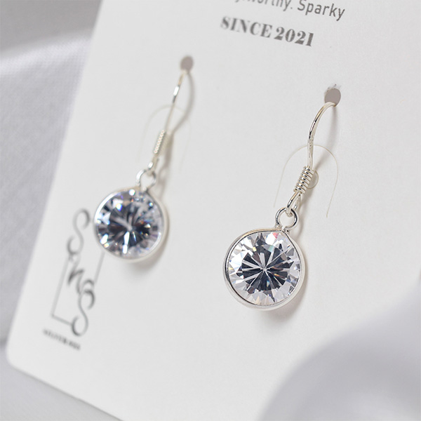 飾品店最常見的單顆鋯石耳環!簡約純銀勾針、鑽石形狀的8mm鋯石,零死角的閃耀,也是飾品批發中的熱銷款式。