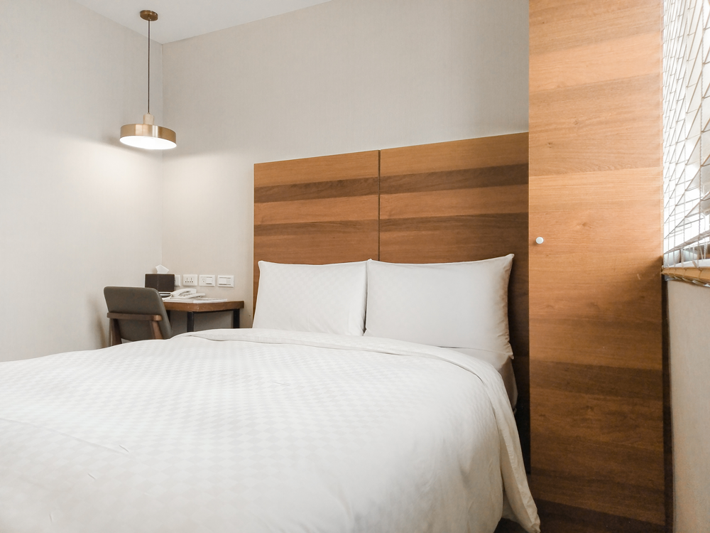質樸的原木書桌襯托筆直俐落的線條、別緻的藝品陳設,散發著雅致的氣息,搭配柔軟舒適的寢具,寵愛每位賓客,盡情享受旅居的美好時光。