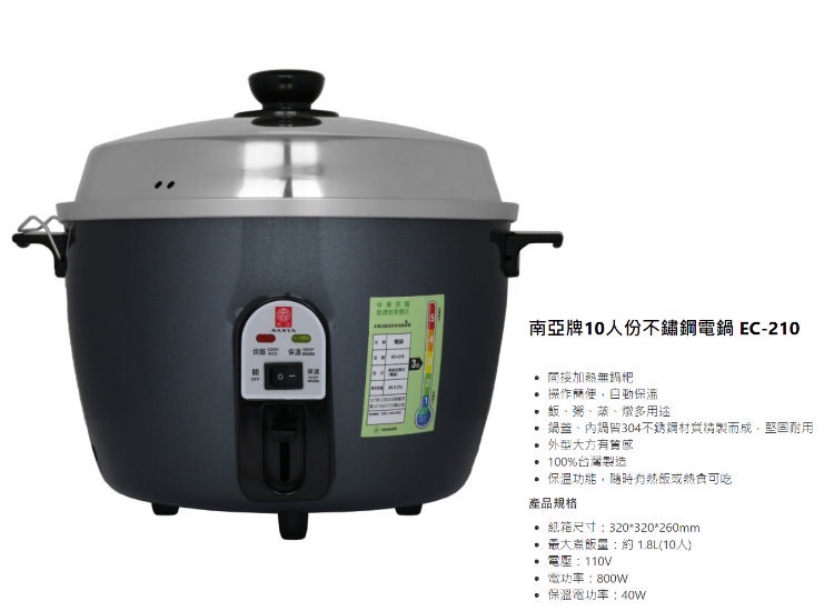 賜豐家電 南亞牌 10人份不鏽鋼電鍋 quantity