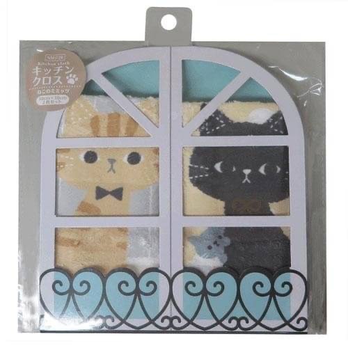 鄉村花園 可愛貓咪窗框造型包裝廚房用餐具擦拭清潔布(2入組) quantity