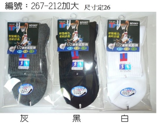 鑫五洲 TOOMY 1/2運動氣墊襪毛巾襪