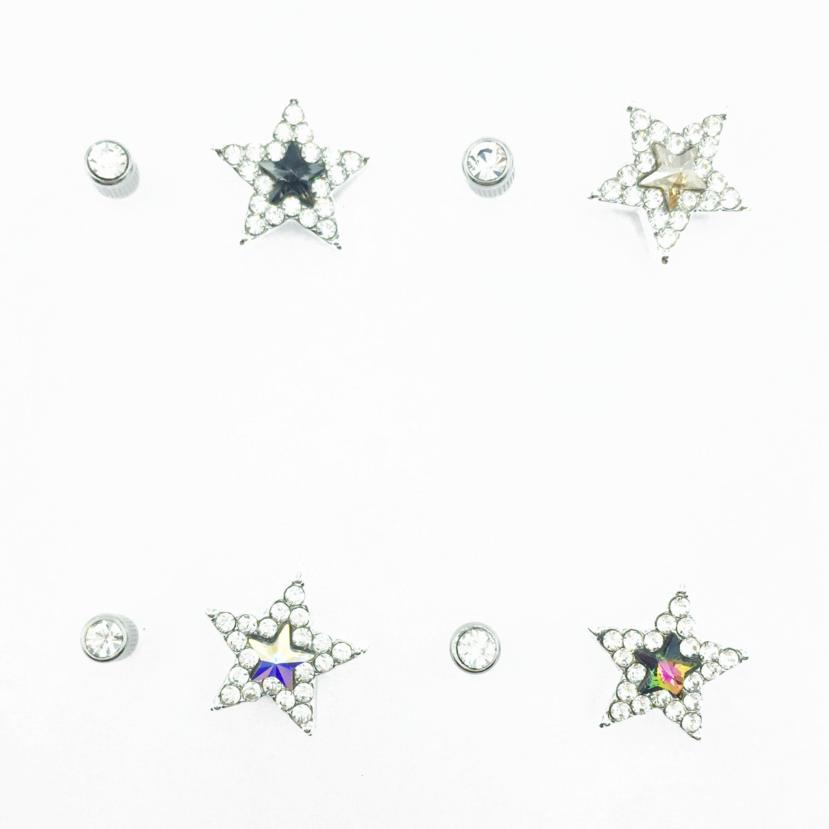 黛德美 不鏽鋼 星星造型 水鑽 七色 後轉式針式耳環