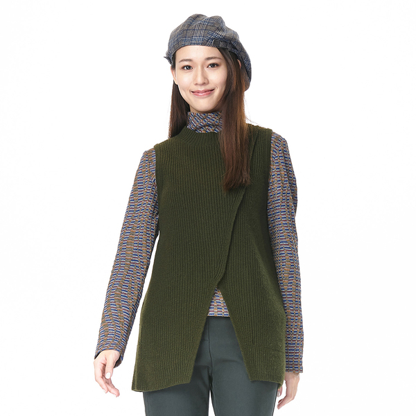 KeyWear 斜開襟設計針織背心(橄欖綠)