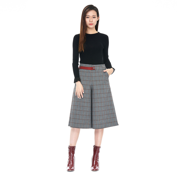 KeyWear 經典格紋寬版七分褲-深