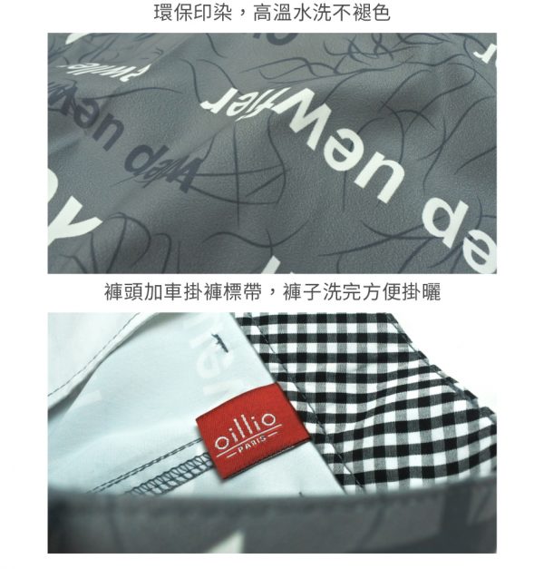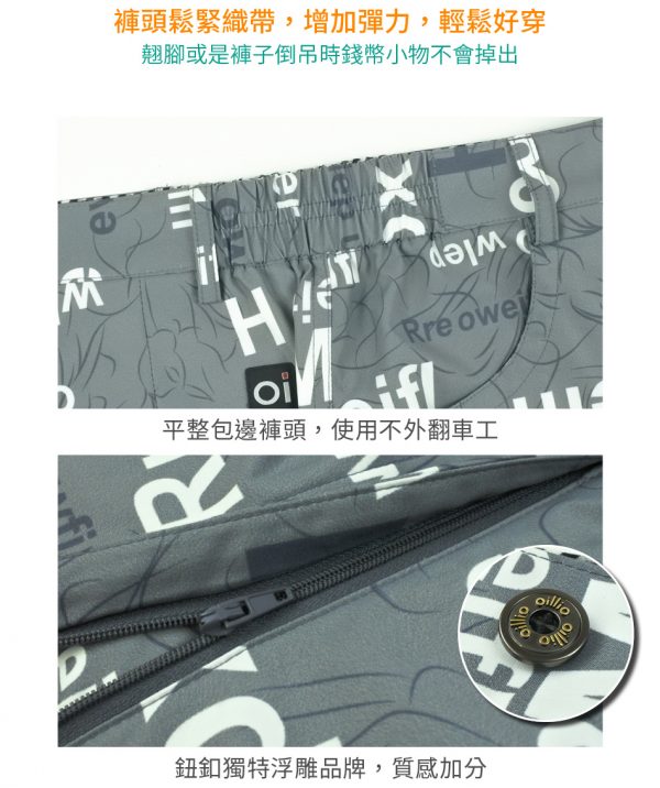 涼爽布料,滿版英文文字設計,細膩光澤,加大尺碼,鬆緊褲頭