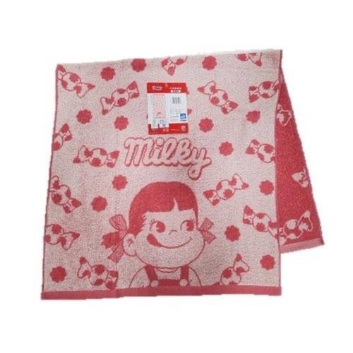 Peko牛奶妹的浴巾,上面印有可愛的圖案。